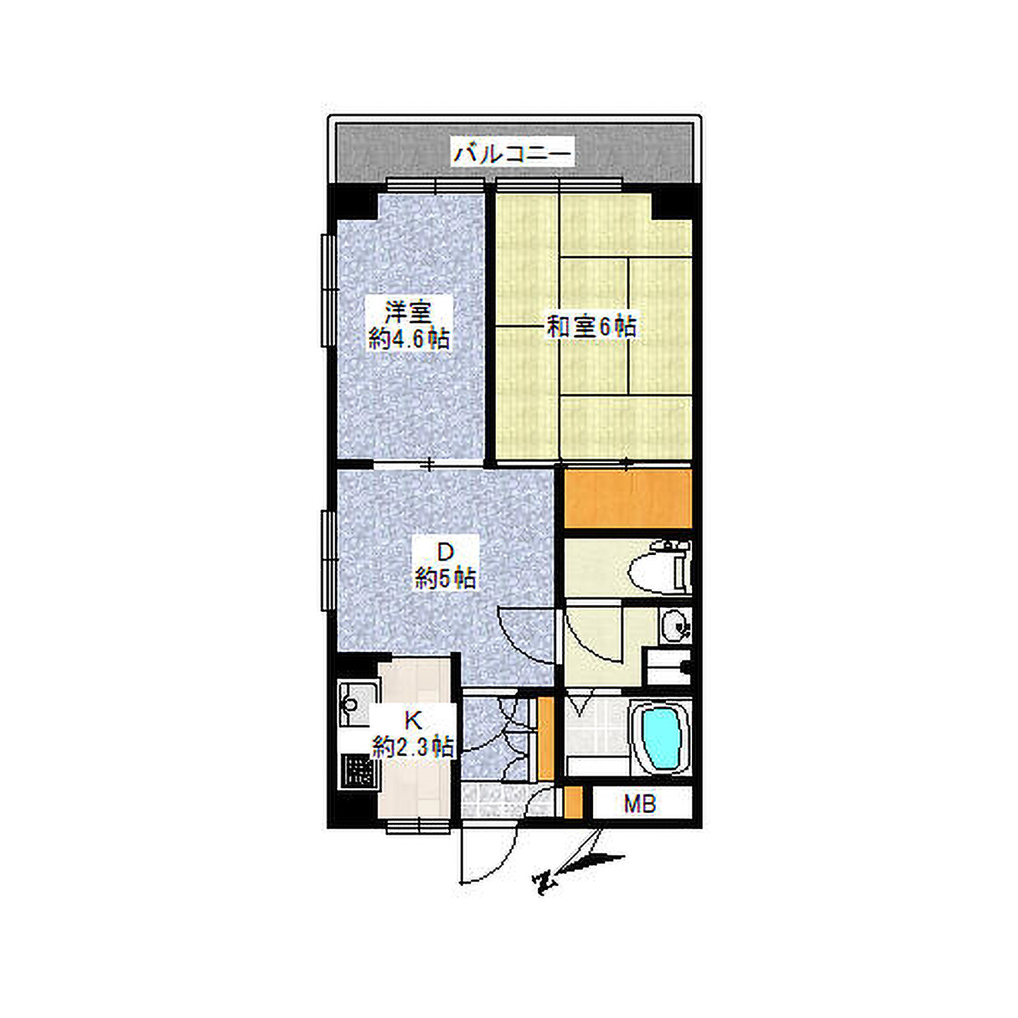 間取内容 | D 5畳 洋室 4.6畳 和室 6畳 K 2.3畳 | ||