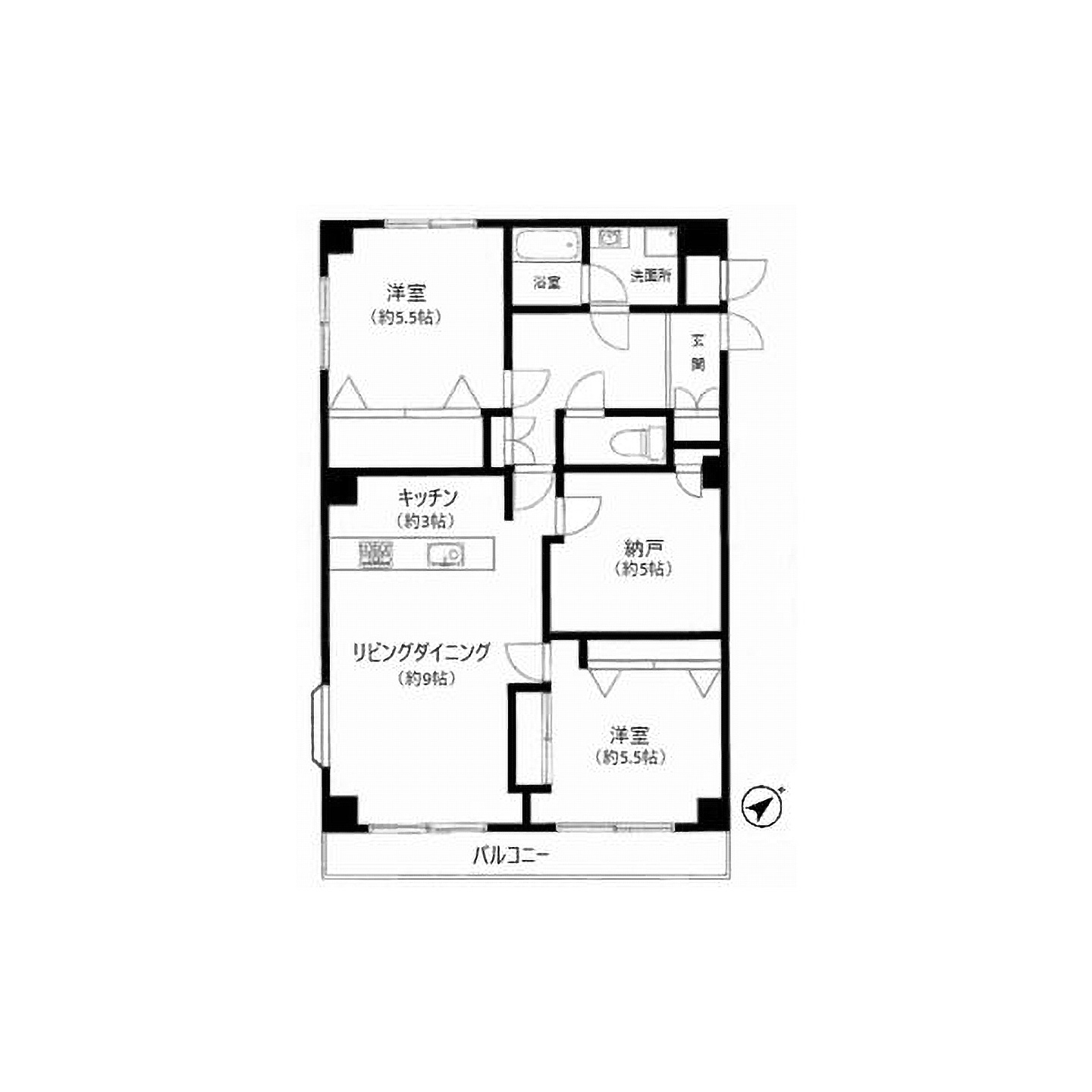 間取内容 | 洋室 5.5畳 2室 LD 9畳 K 3畳 S 5畳 | ||